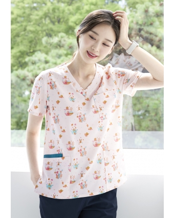 輕柔防潑水印花手術服/上衣
