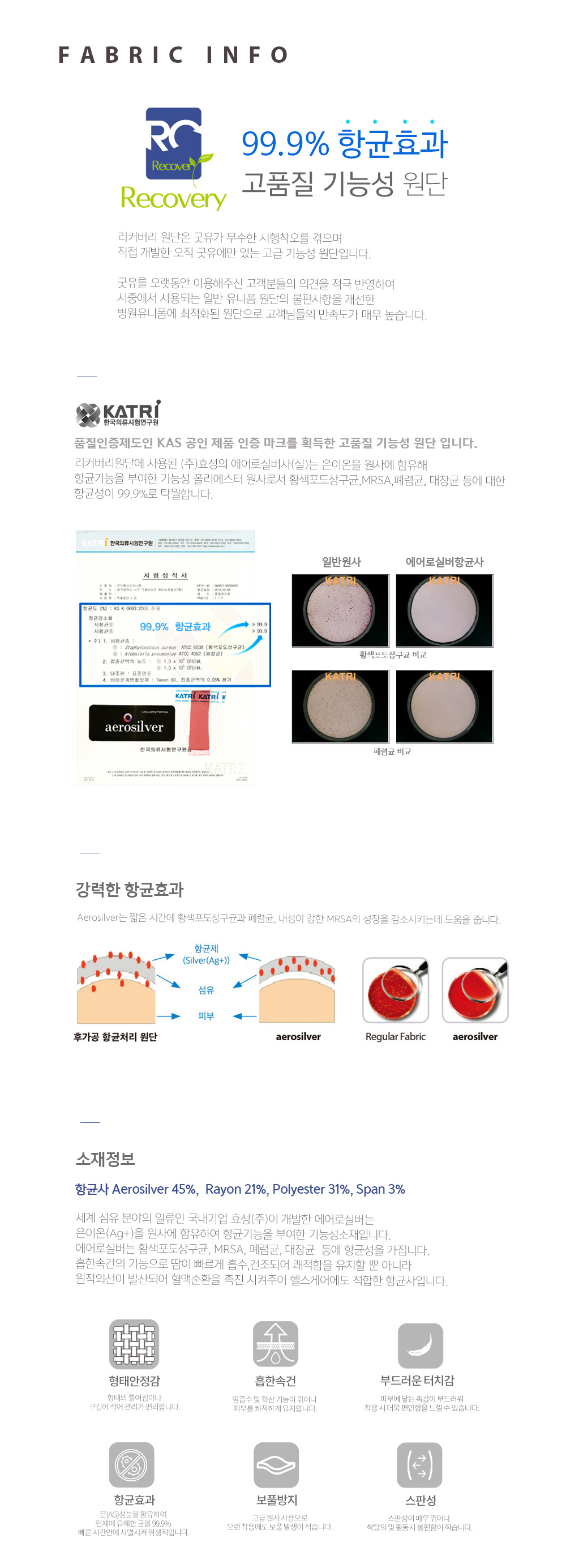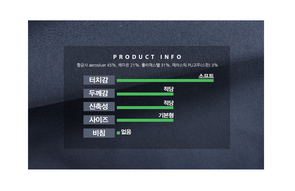 抗菌紗Aerosilver 45%、人造絲21%
