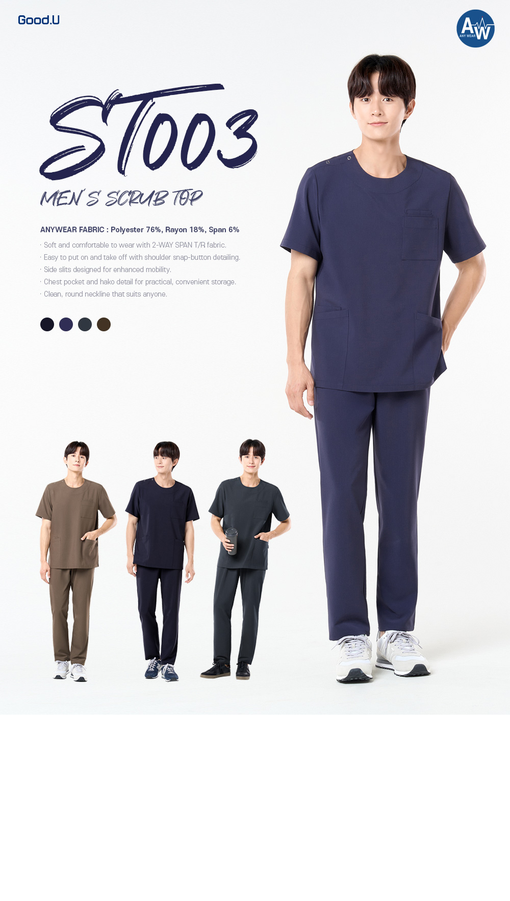 大碼(3XL)以上 上衣加400元◆褲子加200元 細節點 深海軍藍 AY001 深海軍藍 建議穿搭 紫 藍 AY016 灰紫羅蘭建議穿搭 炭灰 AY017 炭灰建議穿搭 沙漠棕 AY018 沙漠棕建議穿搭 布料資訊 產品資訊
