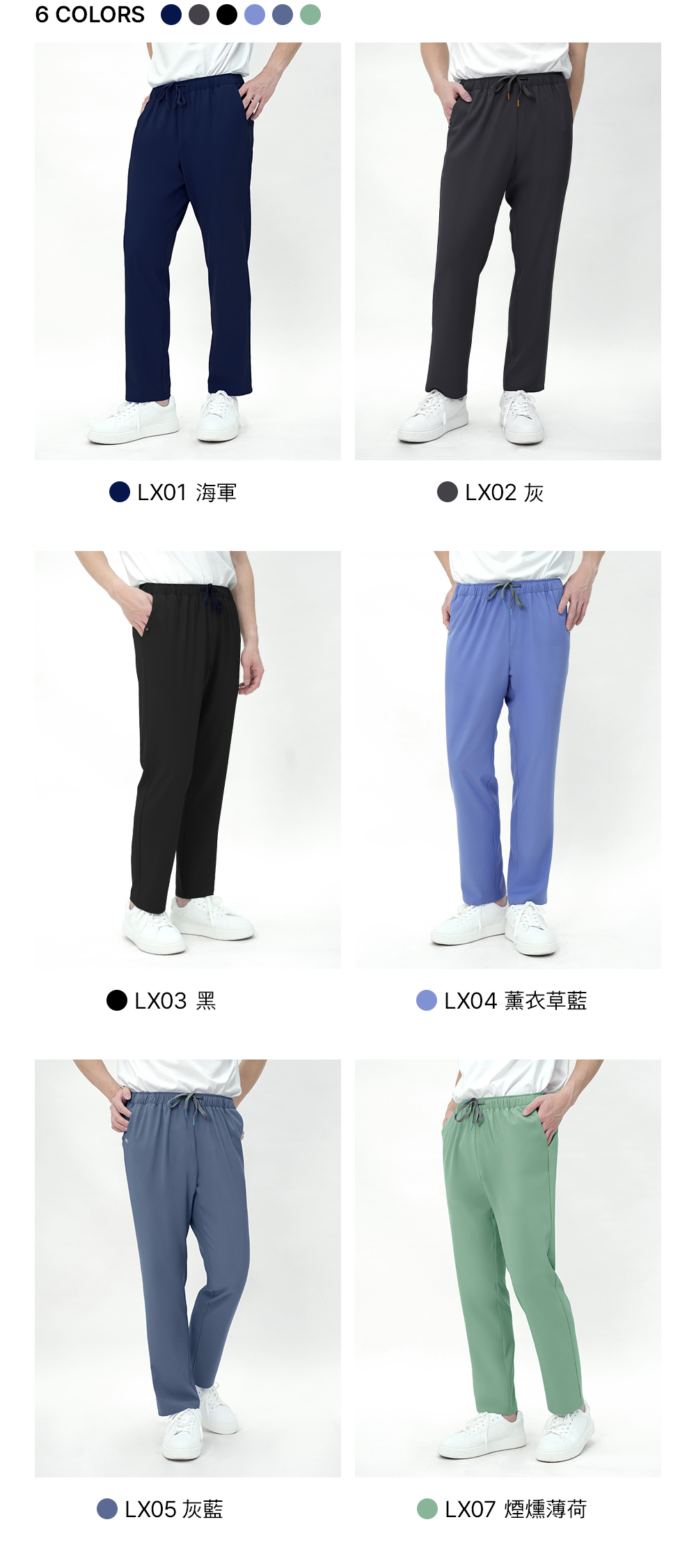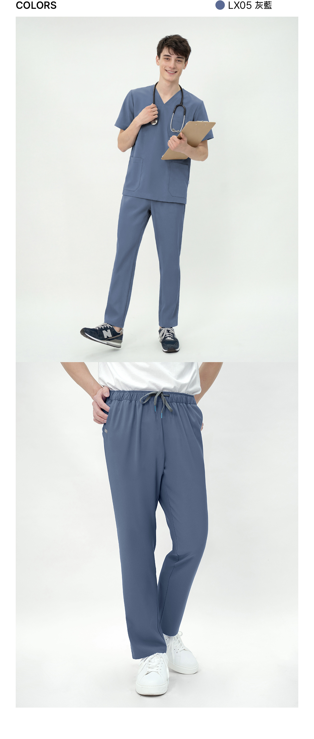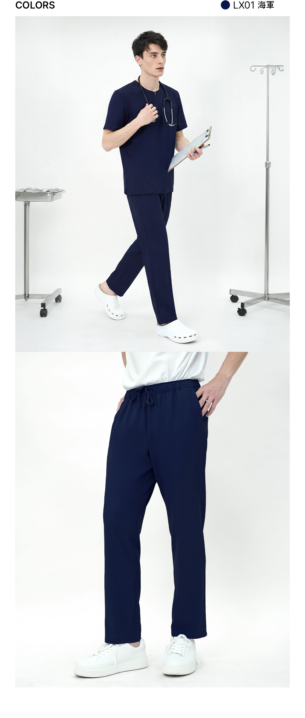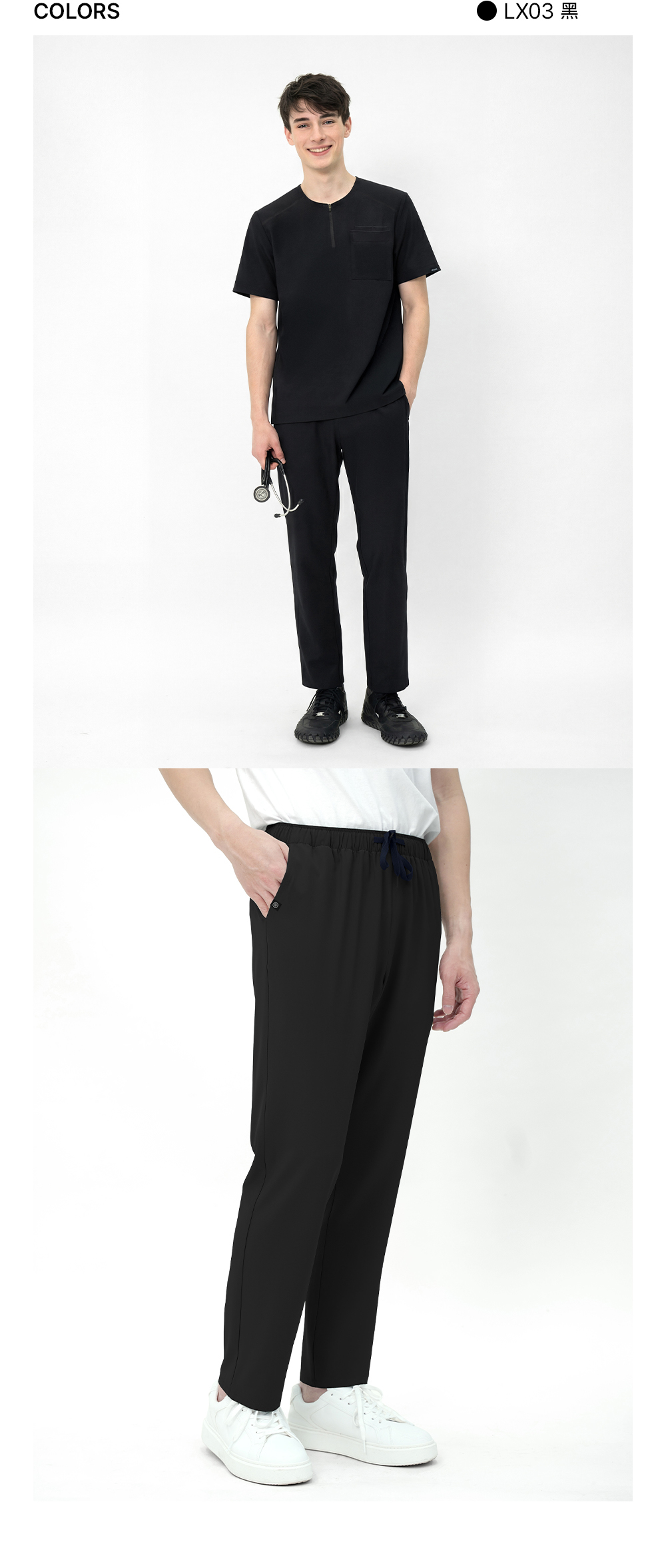 大碼(3XL)以上 上衣加400元◆褲子加200元 基礎系列】CBM001 男士下裝 這是基本款的醫用褲,穿著舒適。 採用柔軟且富有彈性的LEXIONE面料製成, 全天穿著舒適貼合;撞色繫帶和醒目的 雙縫線細節為基本款設計增添了一絲休閒氣息。