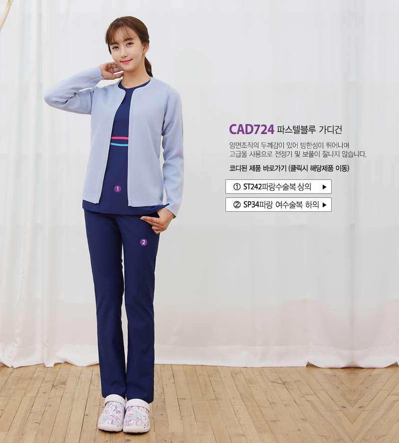 大碼(99含)以上 上衣加400元◆褲子加200元 √ 顏色可能會因顯示器的亮度、對比度和照明而有所不同。 面料特點 50% 棉,50% 聚脂纖維 由於它是一種有彈性的材料,洗滌時必須小心,以免變形。 購買後第一次乾洗,保持美麗長久。 由於其編織緊密,因此具有良好的保溫性。 織物厚度 CAD724 淡藍 整齊落下的利落開襟圓型開衫。 兩面質地厚實,防寒效果極佳。 抗靜電,抗絨毛,是一款保養和保存良好的產品。 它是一種可以輕鬆穿在護理服和手術服上的物品。